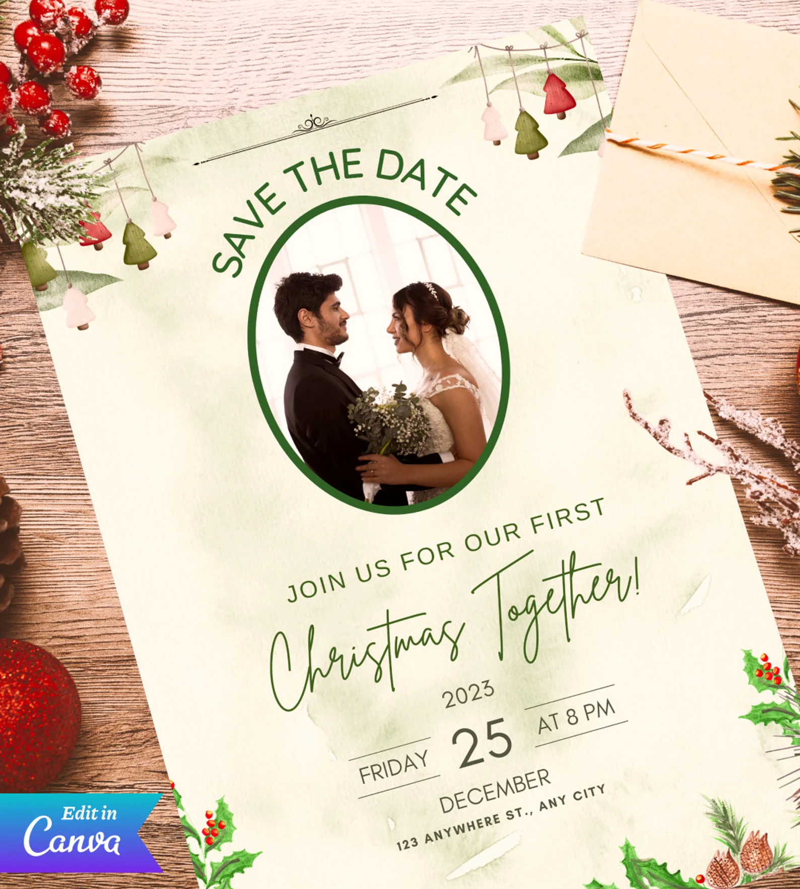 Christmas Wedding Invitation, Editable Christmas Wedding Invitation Template, Christmas Wedding, Wedding Invitation Templates, Digital Wedding Invitation