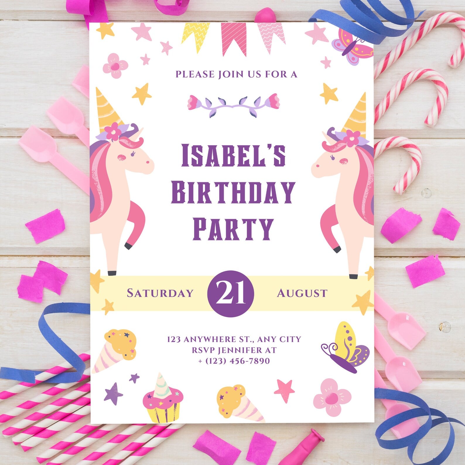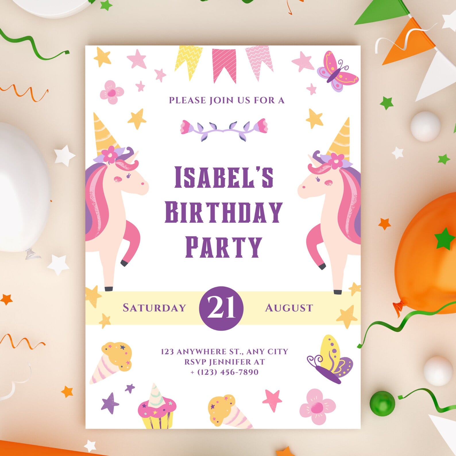 Cutomizable Unicorn Birthday Invitation Template