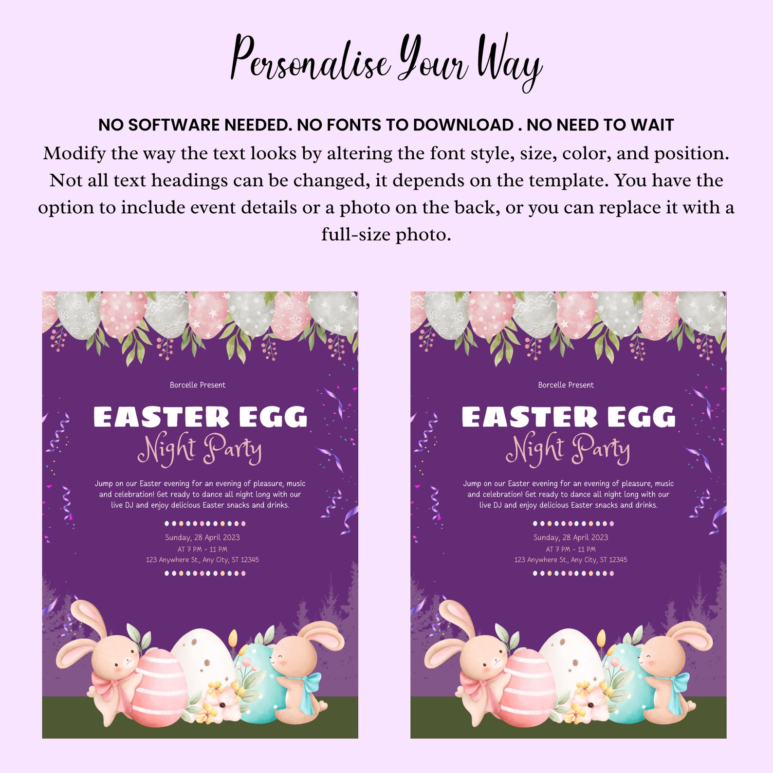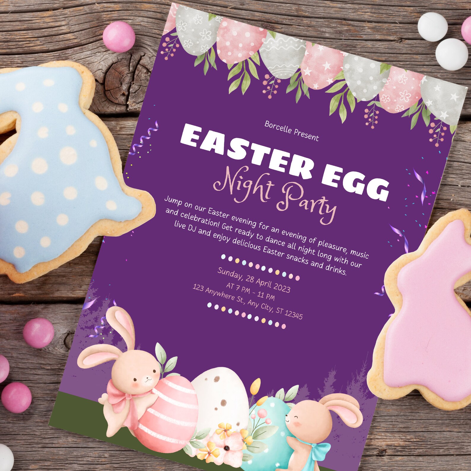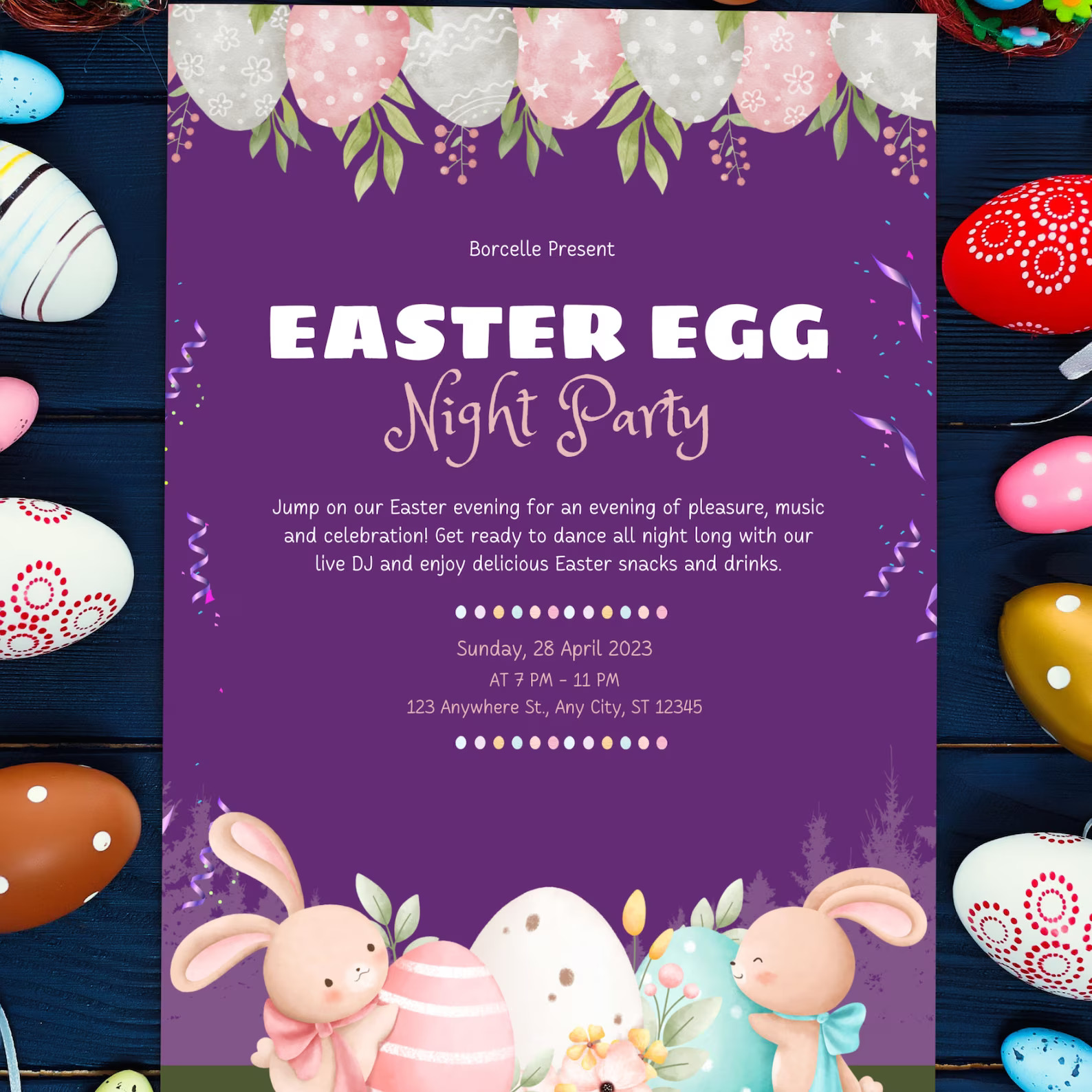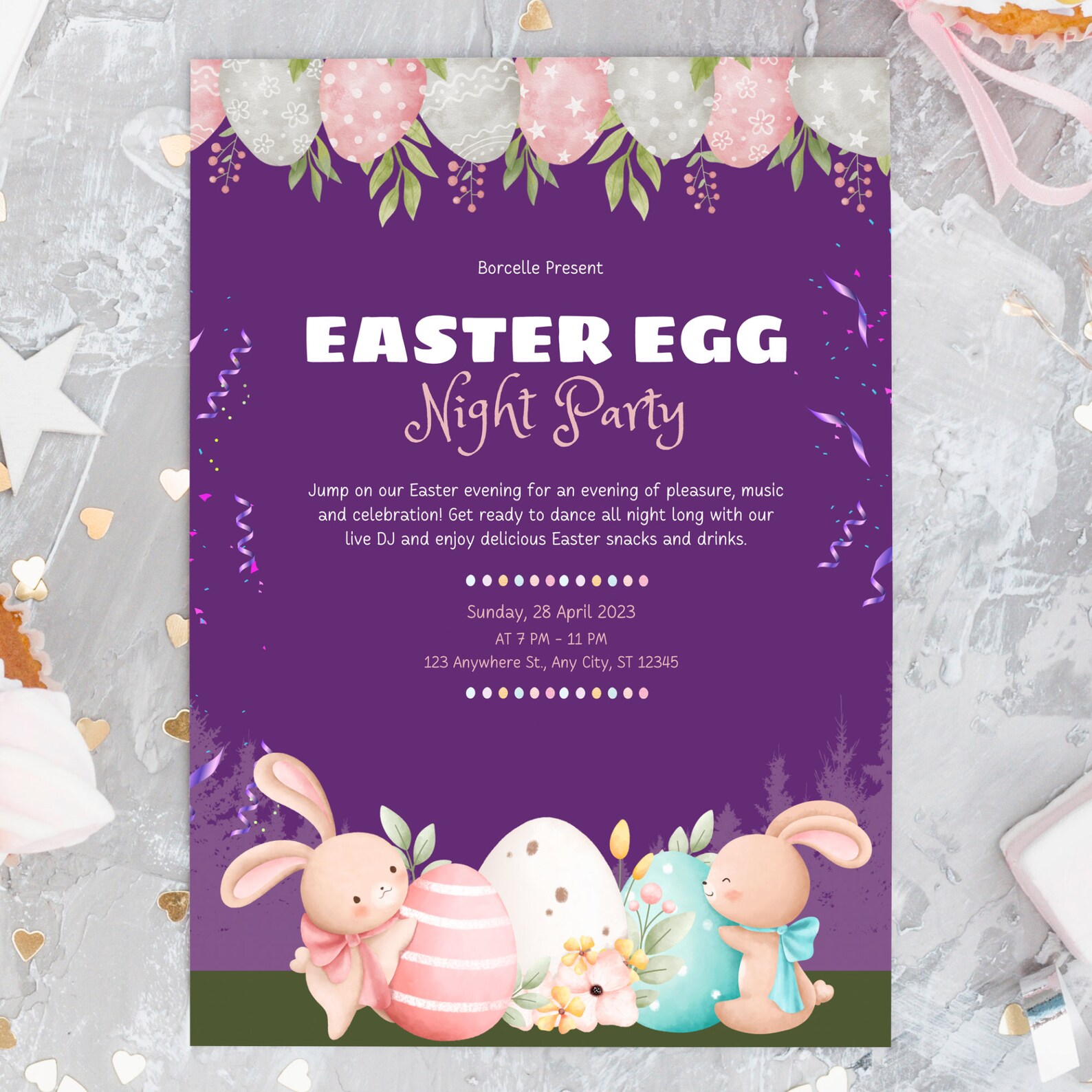 - Editable Easter Egg Night Party invitation templates (High-Resolution Design).