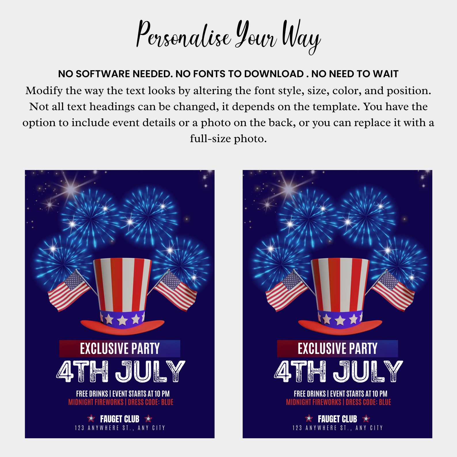 - Instantly access your 4th of July Digital Invitation template through Canva.