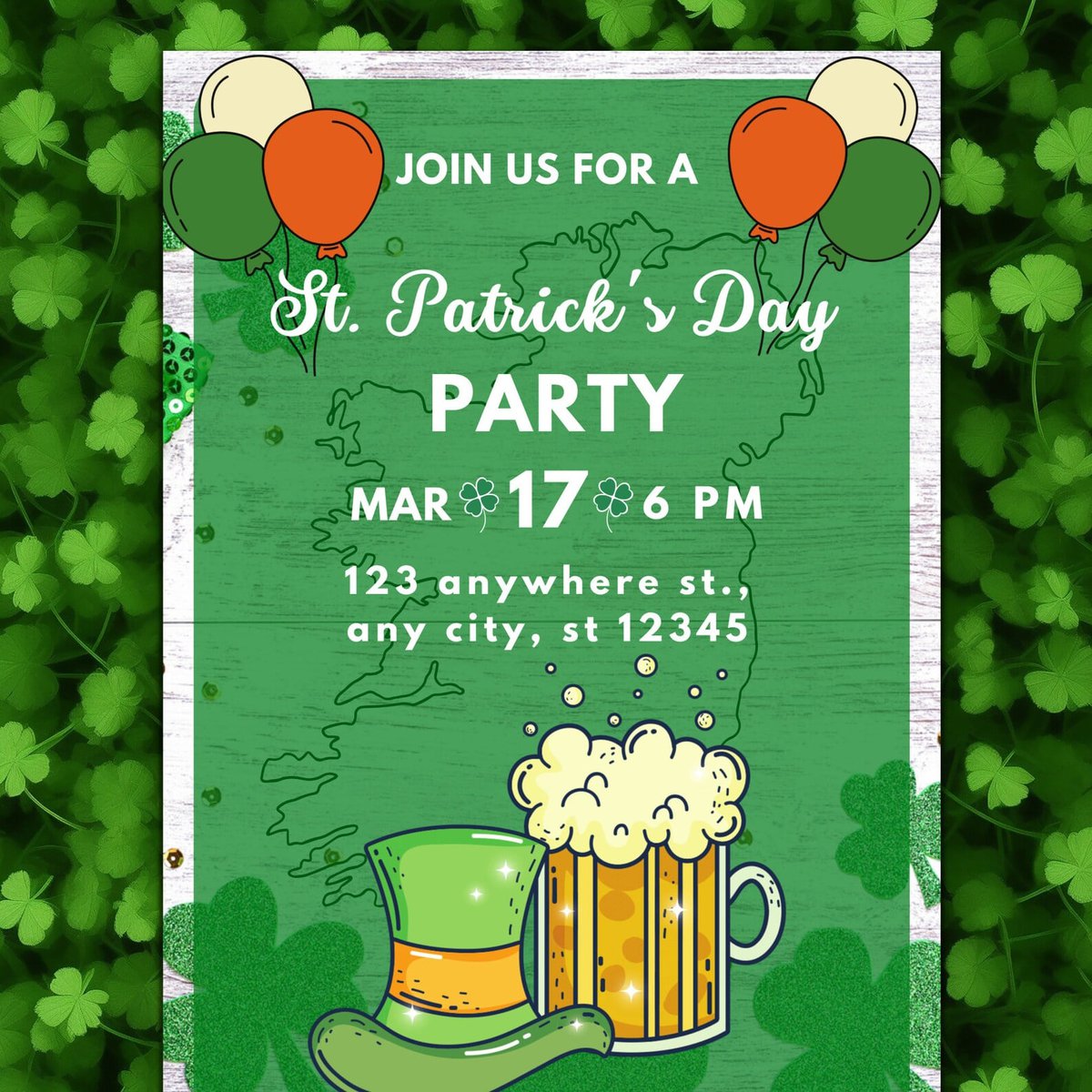 Well, let's break it down. Our invitations are not only visually stunning but also incredibly convenient. With the ease of editing and sending them straight to your guests' mobile devices, you can save time and energy while still impressing everyone on your guest list. Plus, our designs capture the essence of St. Patrick's Day with vibrant colors and festive themes, ensuring that your party stands out from the rest. Whether you're hosting a small gathering or a big bash, our invitations set the perfect tone for a night of fun, laughter, and Irish spirit. So why settle for ordinary when you can have extraordinary? Choose our Editable Eat Drink & Be Irish St. Patrick's Day Mobile Invitation and let the celebrations begin.