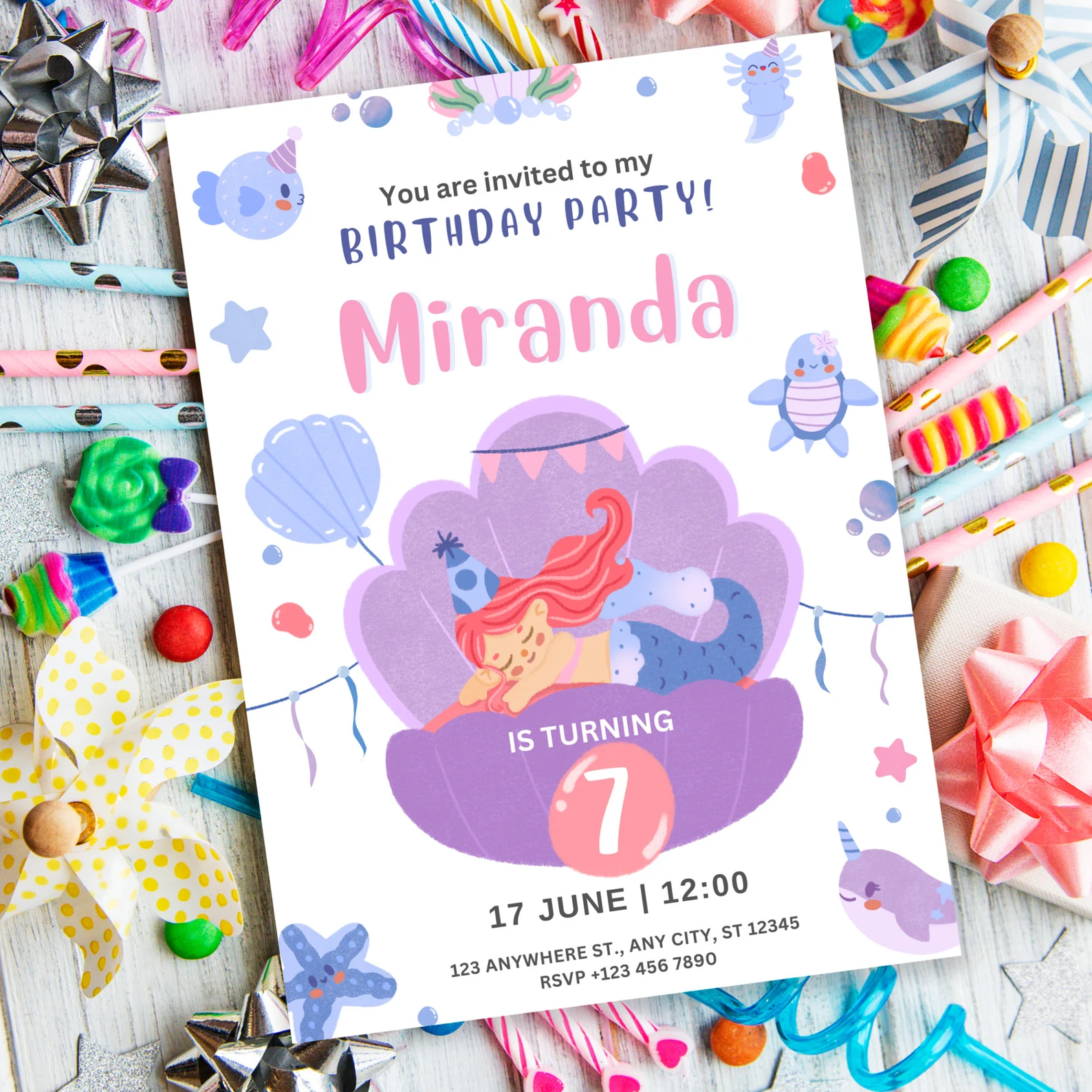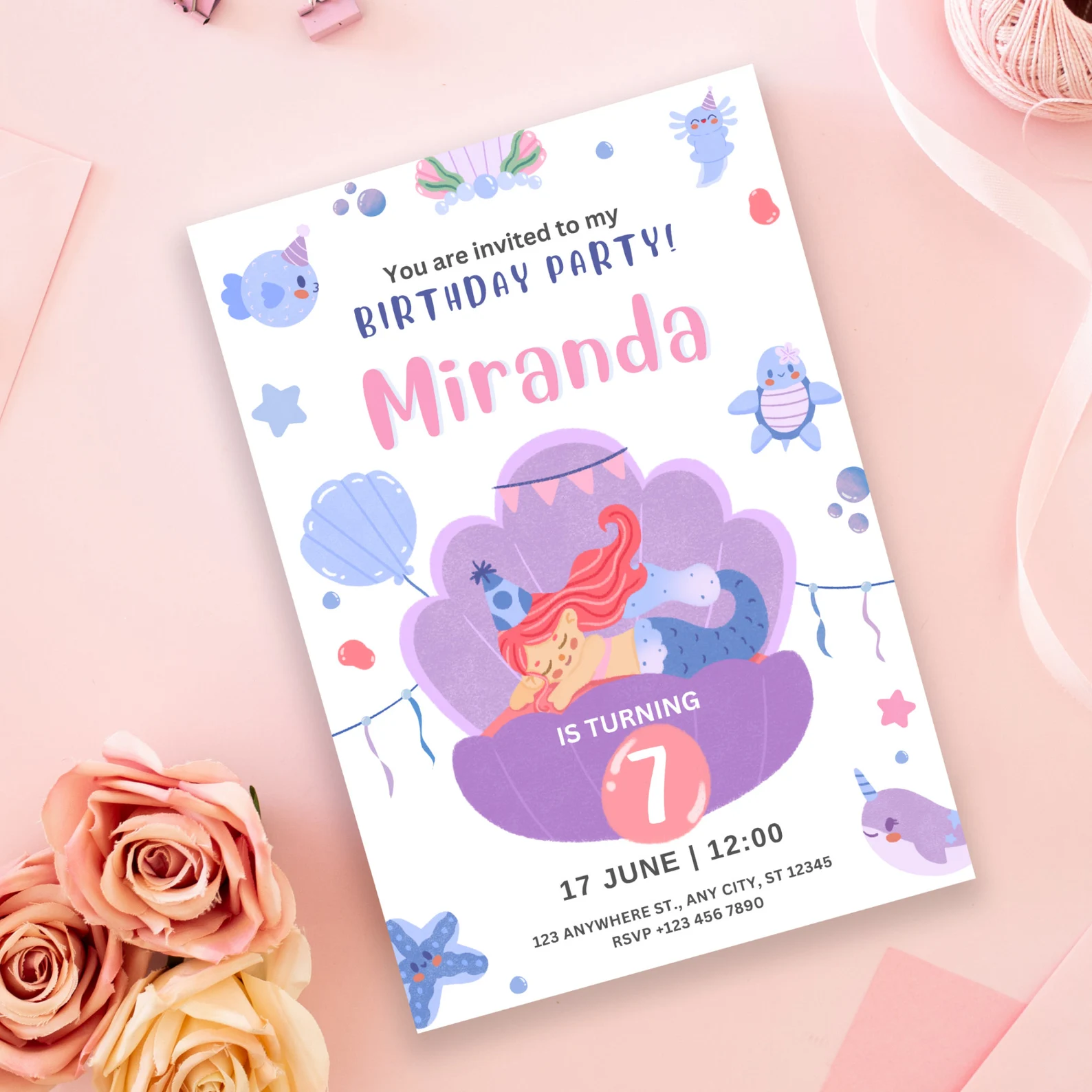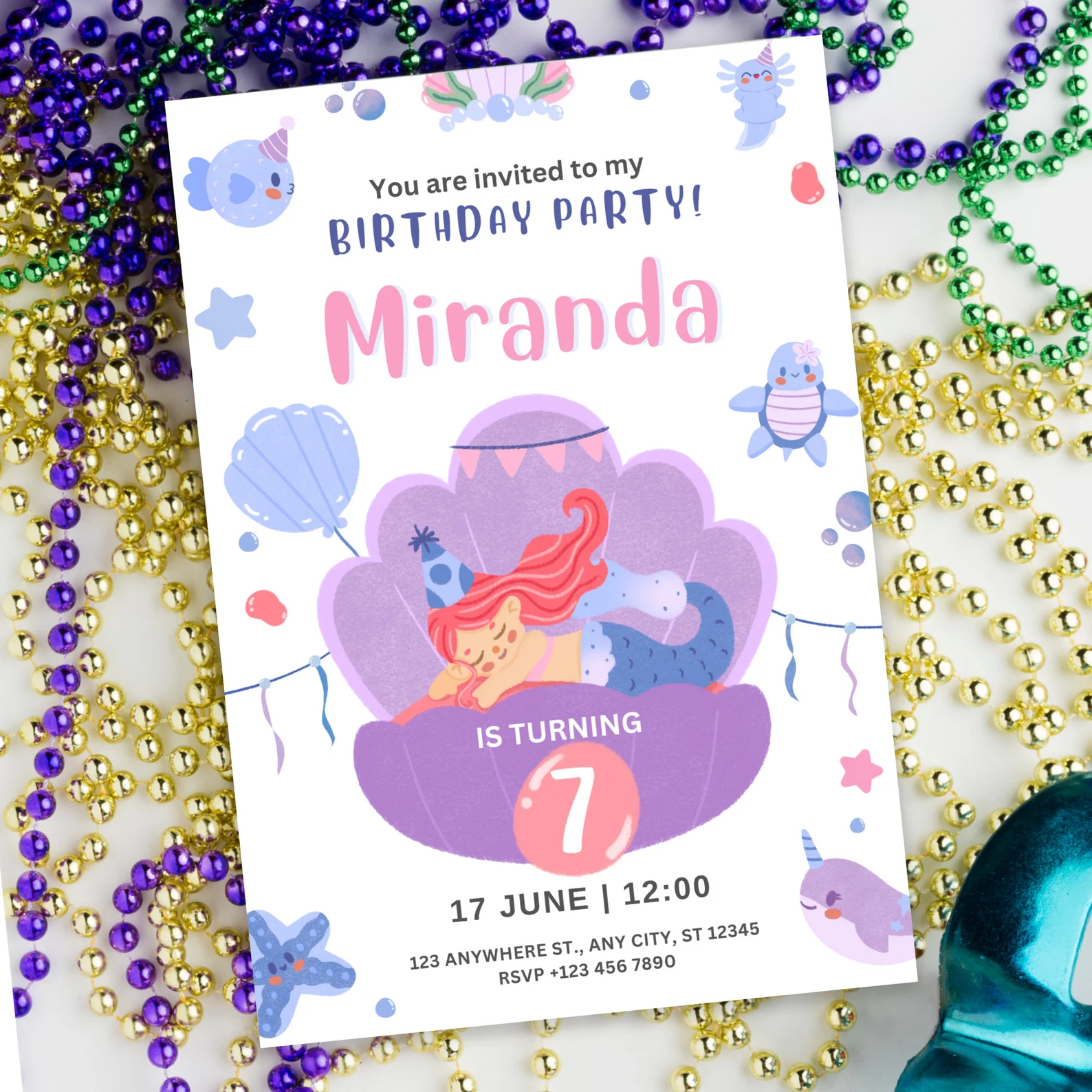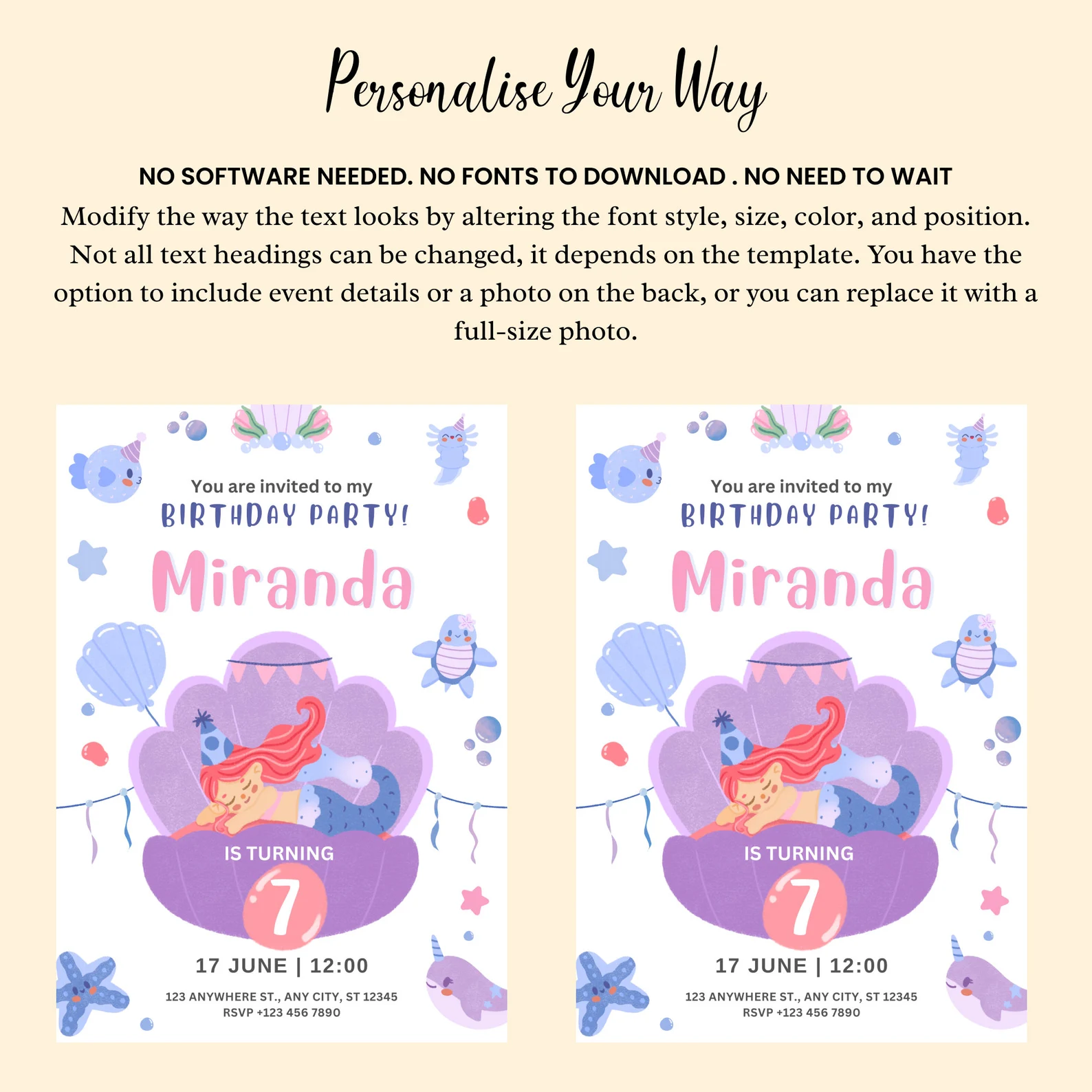 Perfect for anyone looking for Editable Mermaids Birthday Invite Template. Designed for effortless customization, this template features a charming mermaid design that instantly captivates. With user-friendly editing options, you can personalize the text and adjust colors to perfectly match your event's theme. Elevate your invites with a design that’s both enchanting and adaptable.
