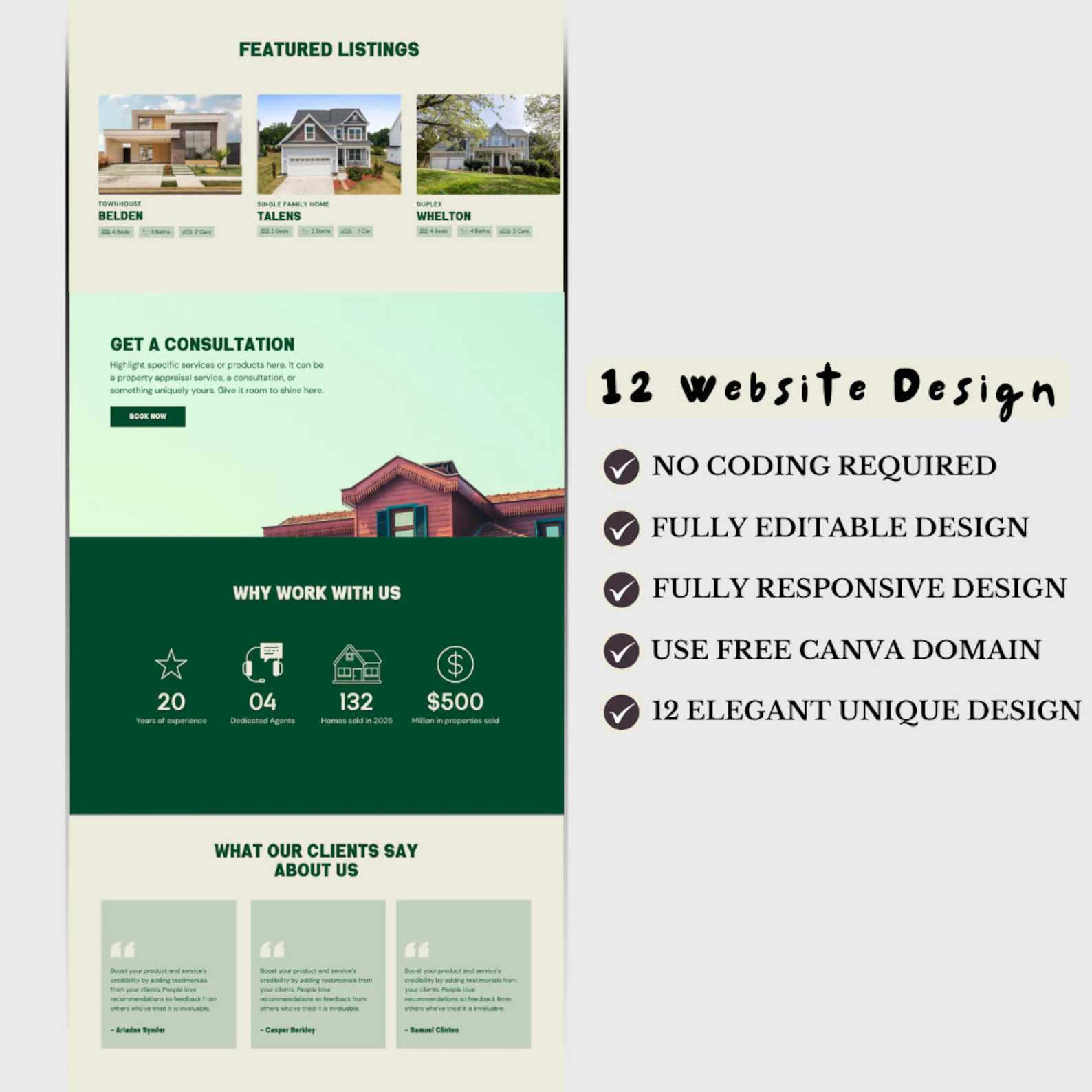 Editable Real Estate Canva Website