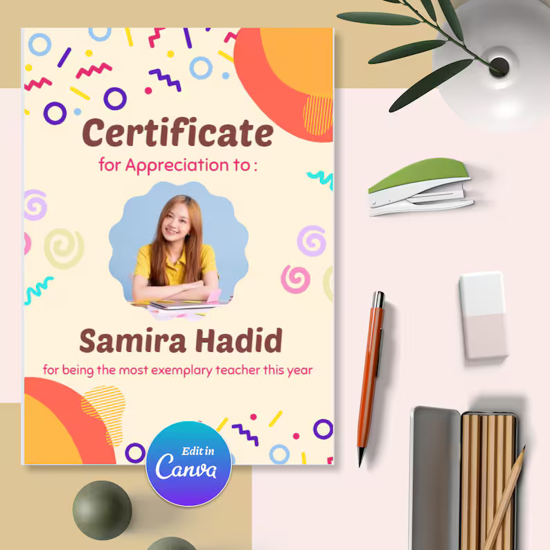 - Once customized, save your design as a PDF, then print at home or send it digitally for a thoughtful Teacher Appreciation gift.