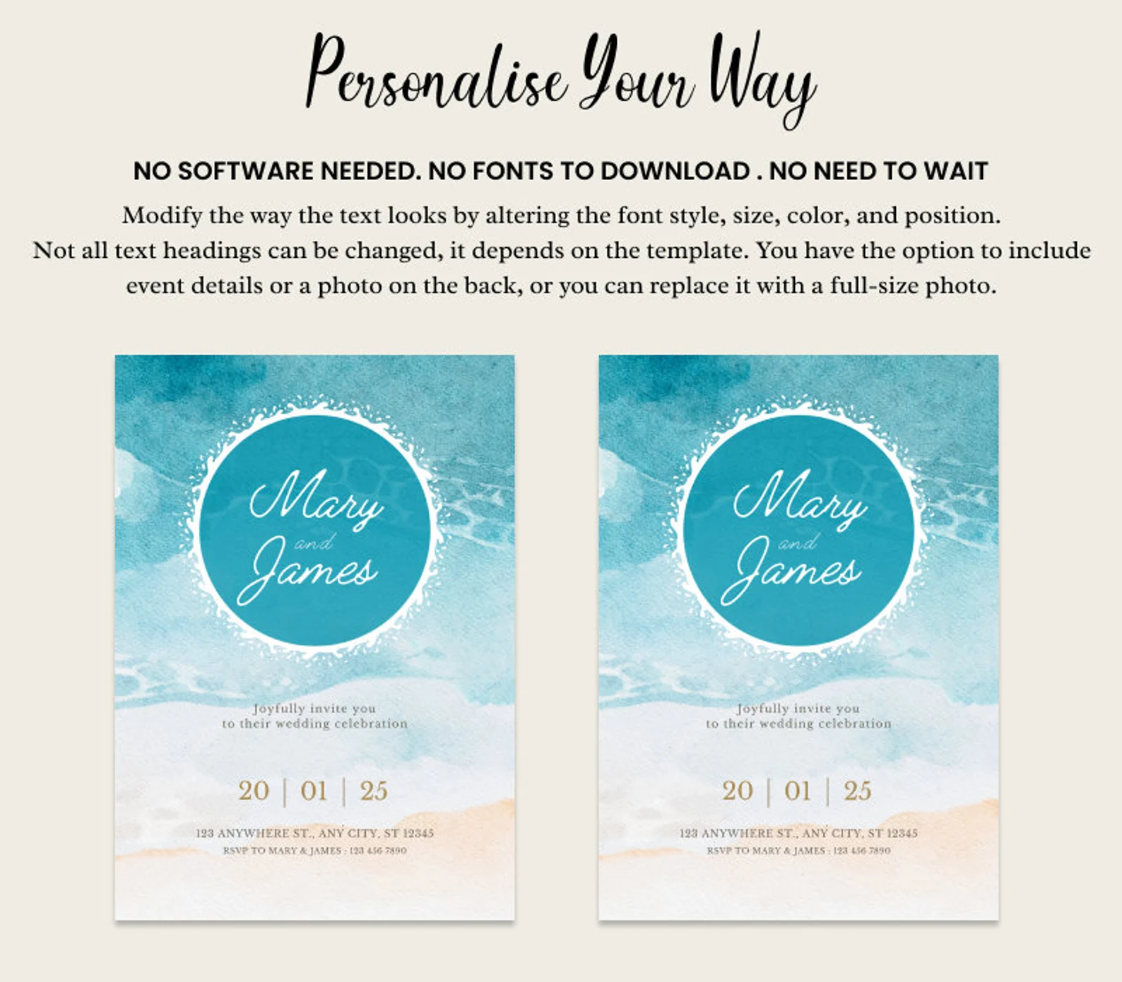 Upgrade your wedding invitatin with our Editable Wedding Invitation Belly Band! Featuring a gorgeous watercolor floral design in soft, beachy tones, this minimalist wrap adds a touch of elegance and personalization to your invites. Customise effortlessly online—no special software required! Change fonts, text, and colors to match your wedding style. Perfect for DIY couples who want a unique, professional touch. Instantly downloadable and easy to use!