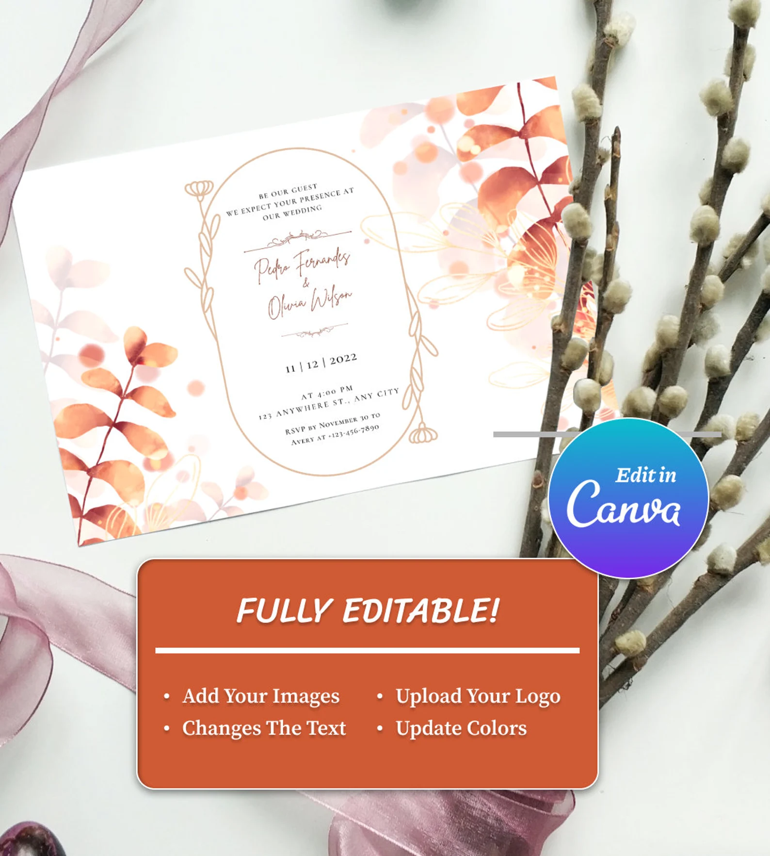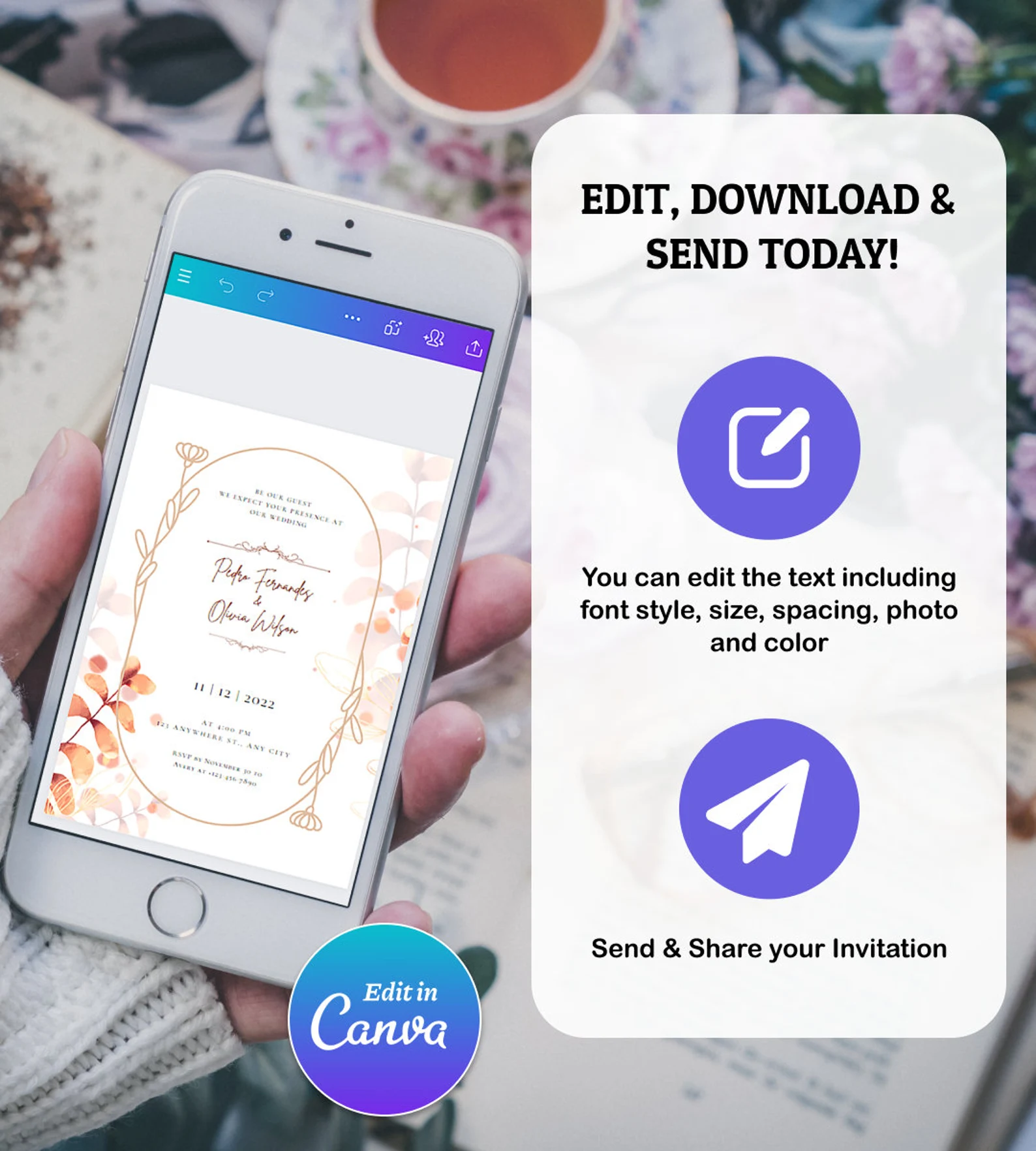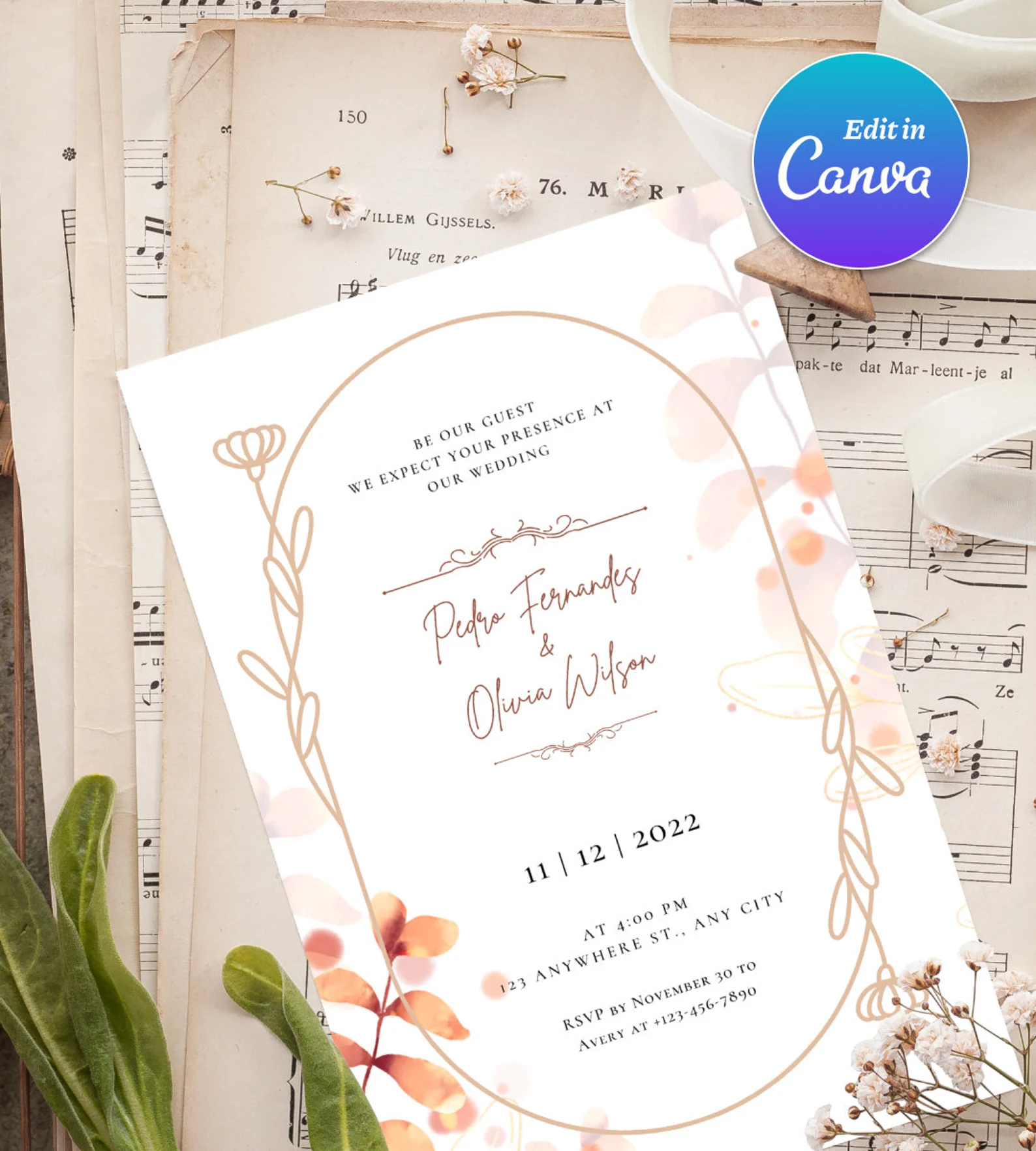 Floral Type Arch Wedding Invitation Template, Editable Wedding invitation, Instant Download, 5-5 Different Sizes Templates