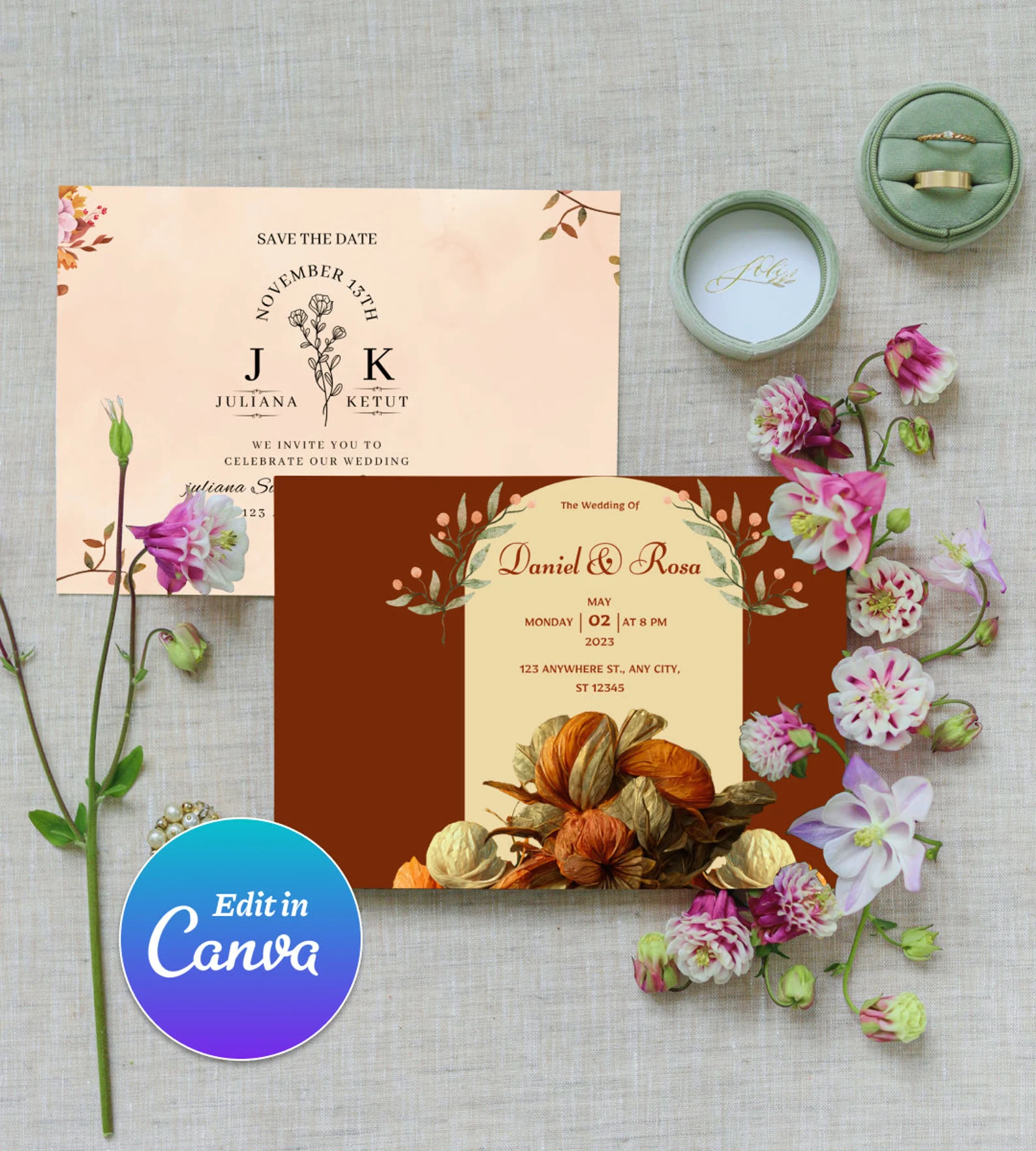 • 5x3.5” Wedding Invitation template