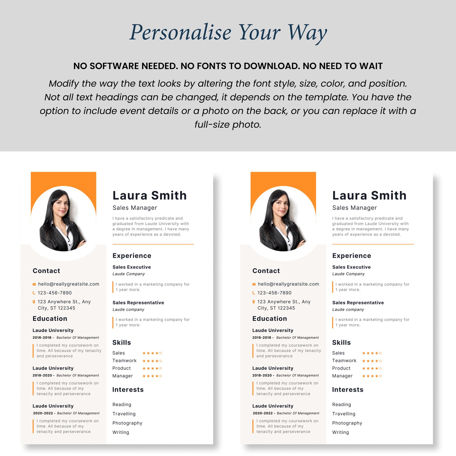 • Customizable text, colors, fonts, and graphics to align with your personal brand.