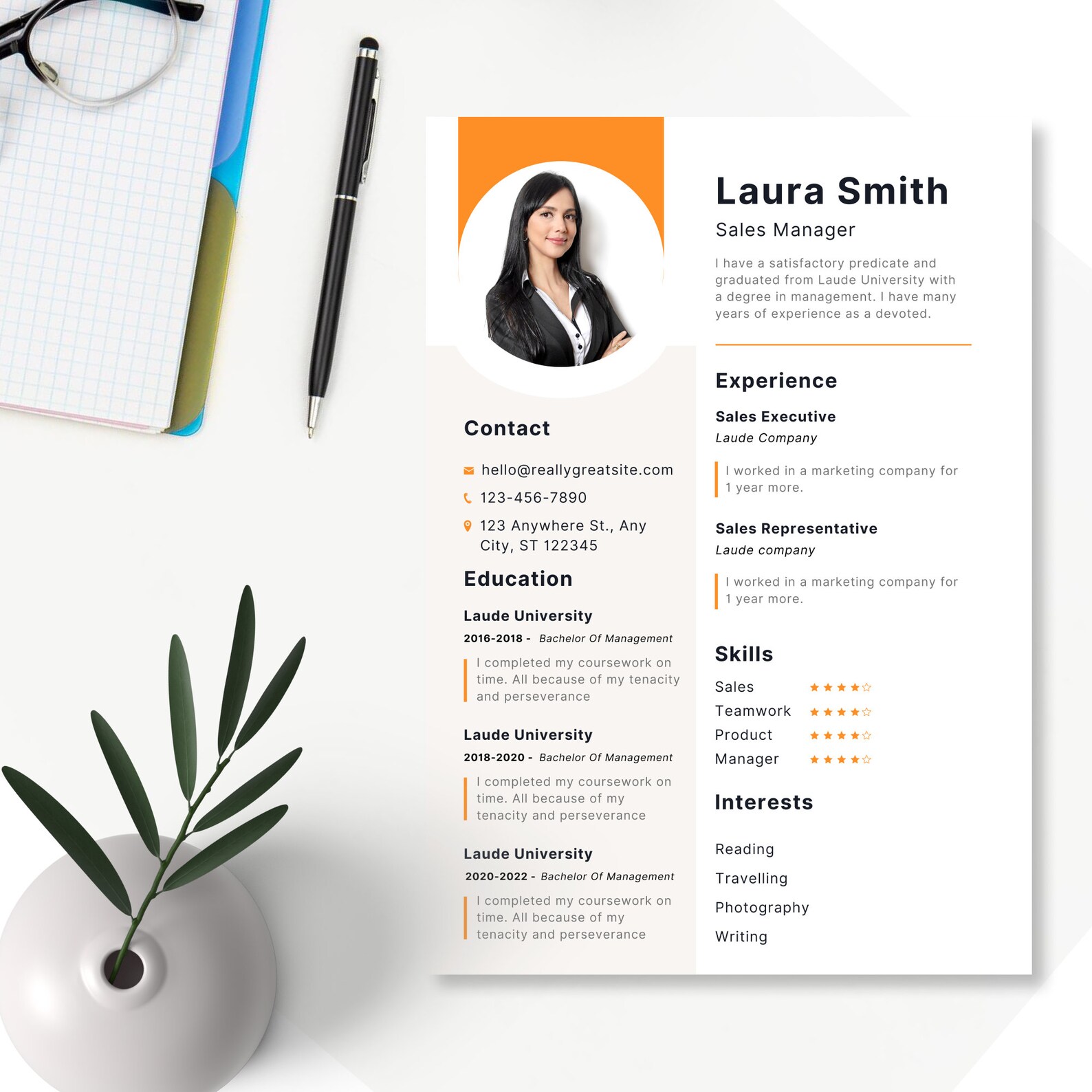 • 1 PDF with a Canva Link to access your Modern Resume Template with Photo.
