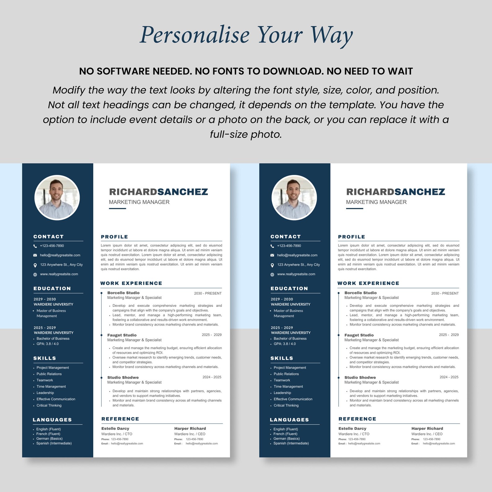 - Customizable text, colors, fonts, and graphics to align with your personal brand.