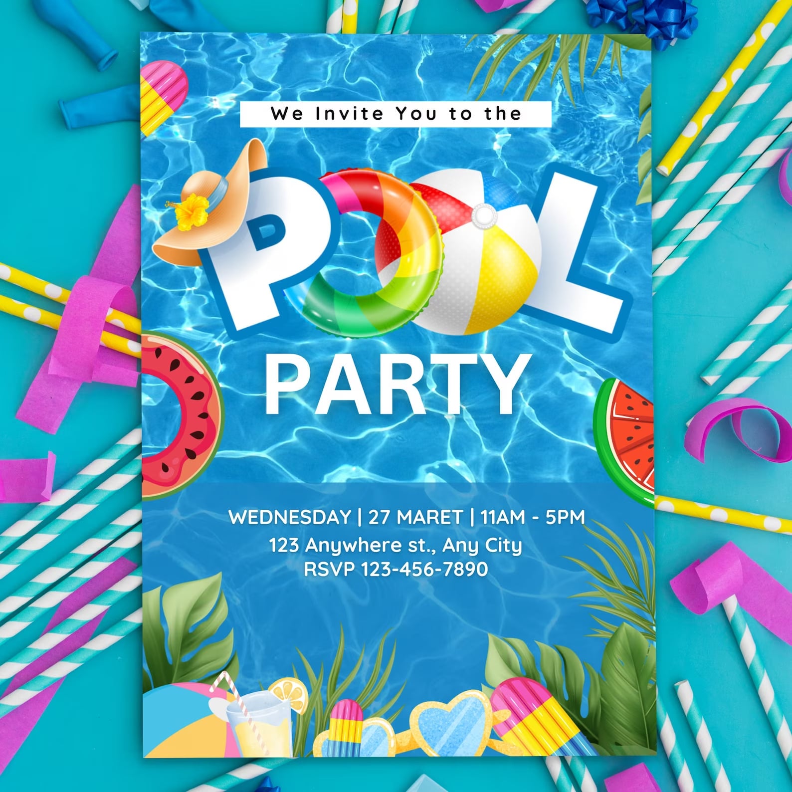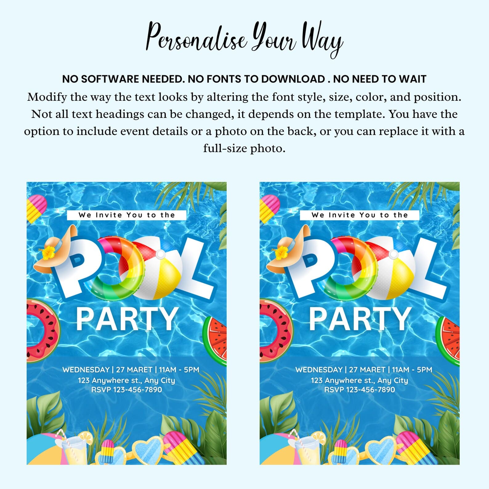 Why pick us for your party invitations? Because our Slumber Pool Party Birthday Invitations are the coolest! They're also super easy to use since they're digital and printable. Imagine a Sleepover Swim Birthday Invite that's not only fun but also unique. You get to add your details easily, making it all about your special celebration. The design is lively and captures the excitement of a fantastic pool party. With us, you're choosing simplicity, style, and no stress. Make your child's birthday stand out with our awesome and customization invitations. Trust us – it's the easiest way to create a memorable party atmosphere that everyone will love!