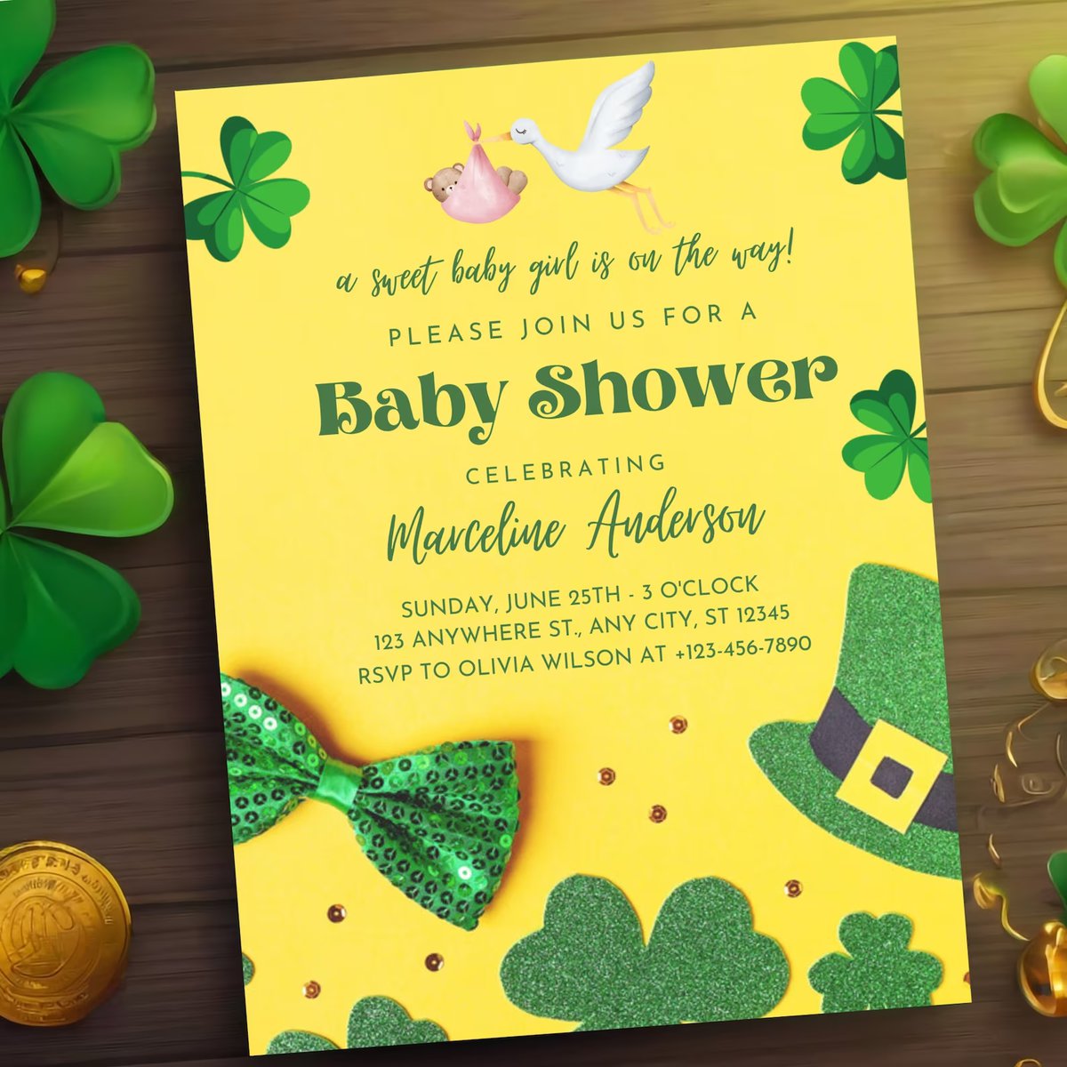 • Editable St. Patrick’s Day Baby Shower Invitation – designed for a festive and fun celebration.