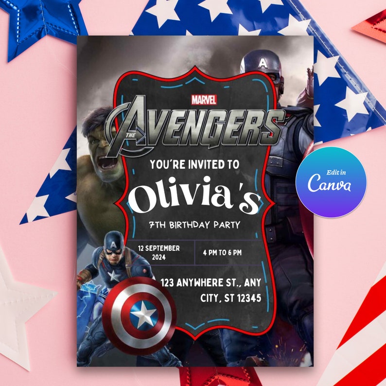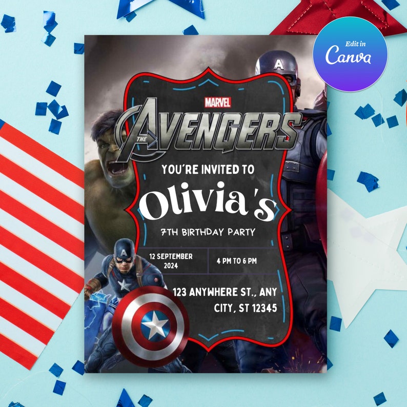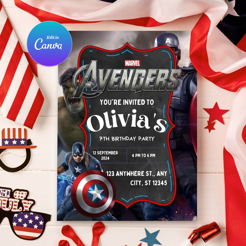 Whether you're planning a Marvel or DC superhero-themed party, this editable Canva invitation makes it easy to customize and print instantly. Perfect for kids’ birthdays, this superhero-themed invitation will get guests excited for an epic adventure!