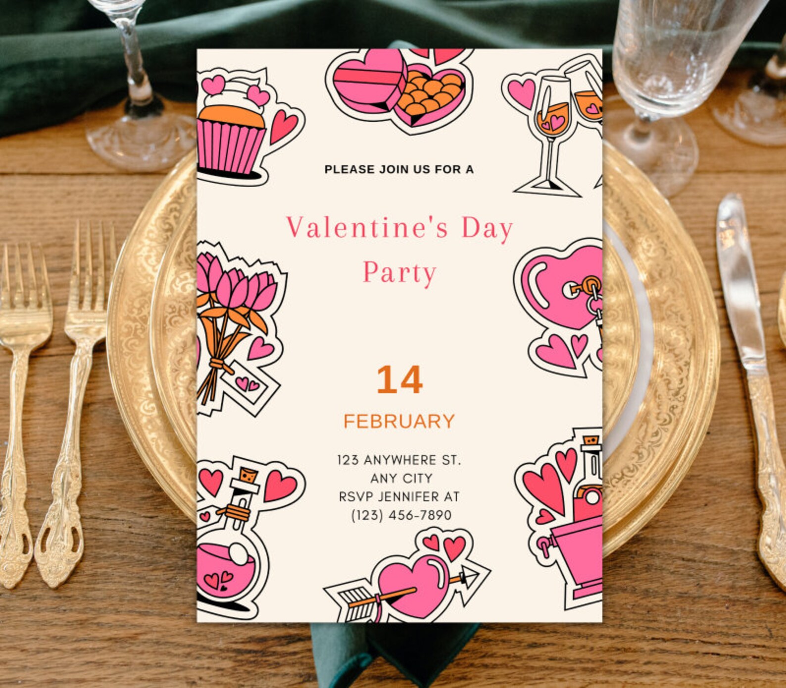 Looking for a great digital Valentine's card? Whether it's for a Valentine's Day Brunch, a Heart Class Party, or a simple get-together, we're here to help. Our team wants to make things simple and fun for you. We'll work with you to choose the right pictures and words that match your style. Your happiness is important to us, and we're thankful you picked us. Our main goal is to make your Valentine's Day really special. We hope you'll come back to us for all your future invitation needs. Let's make giving invitations easy and happy together.
