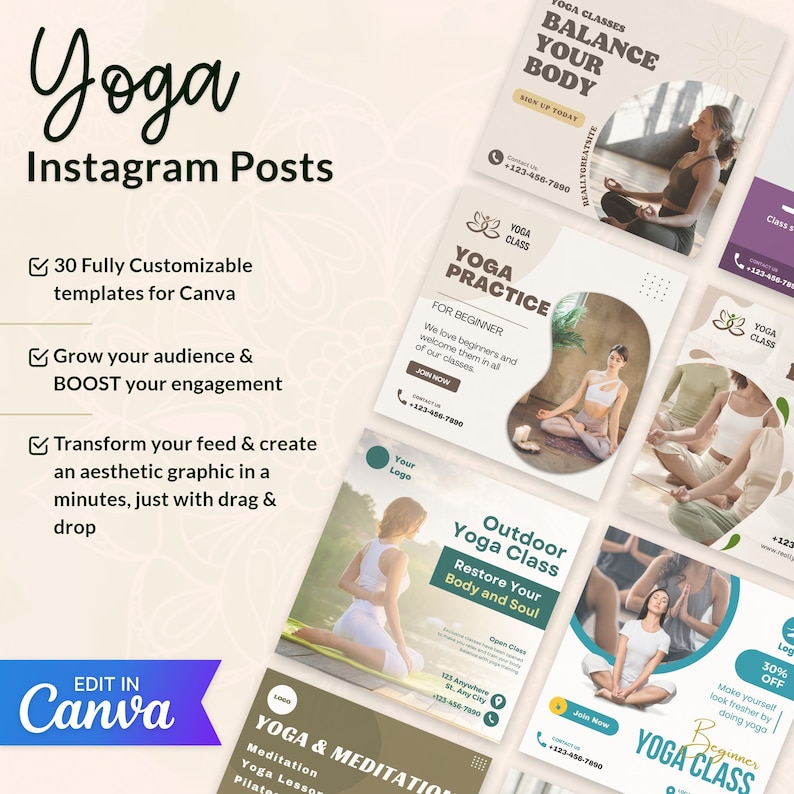 • Follow the link to access your editable Yoga Instagram Post Templates.